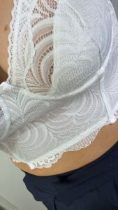 With arms at sides, place tape measure under your arms and run it around the fullest part of the bustline and across the shoulder blades.